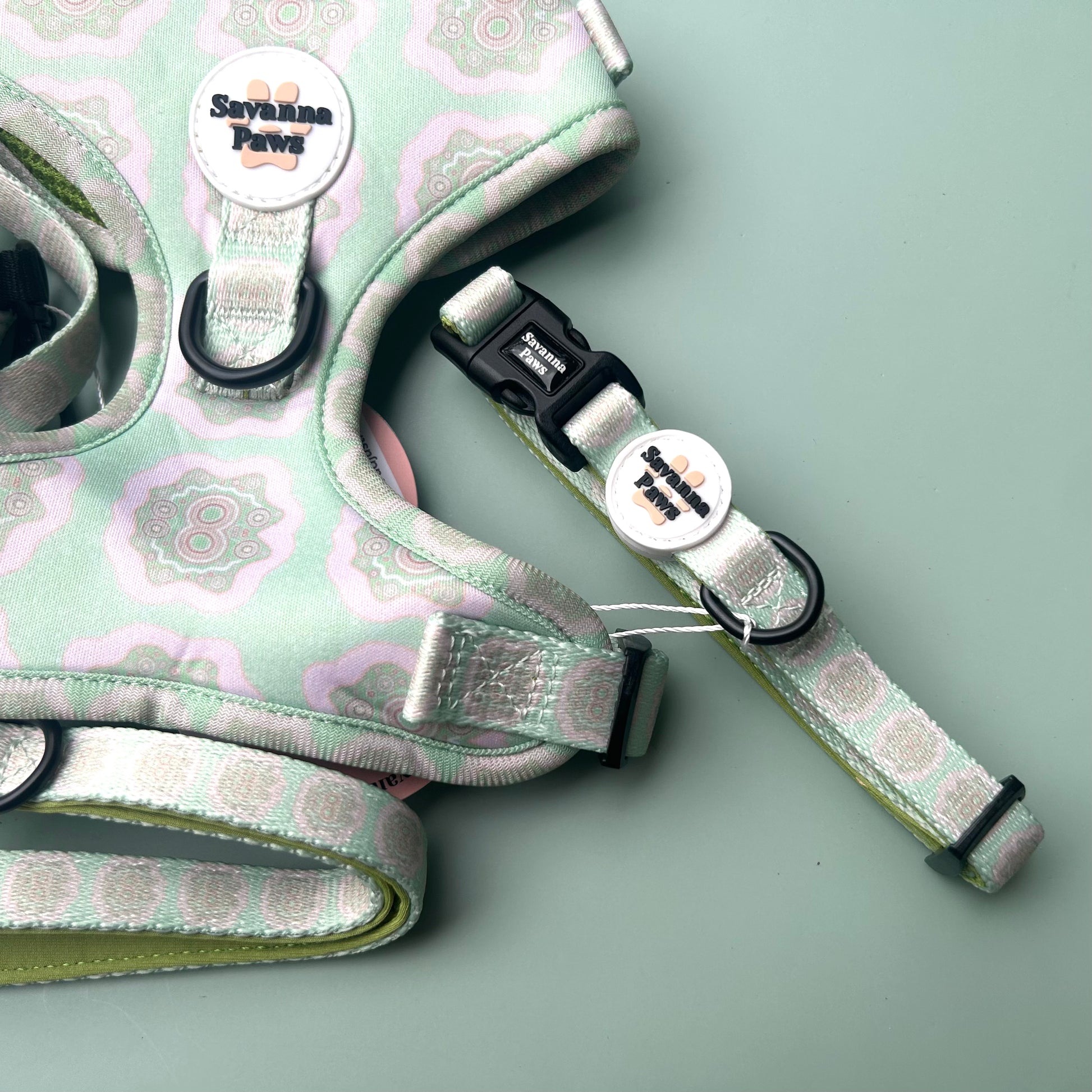 These fully adjustable polyester collars come in a beautiful First Nations print.