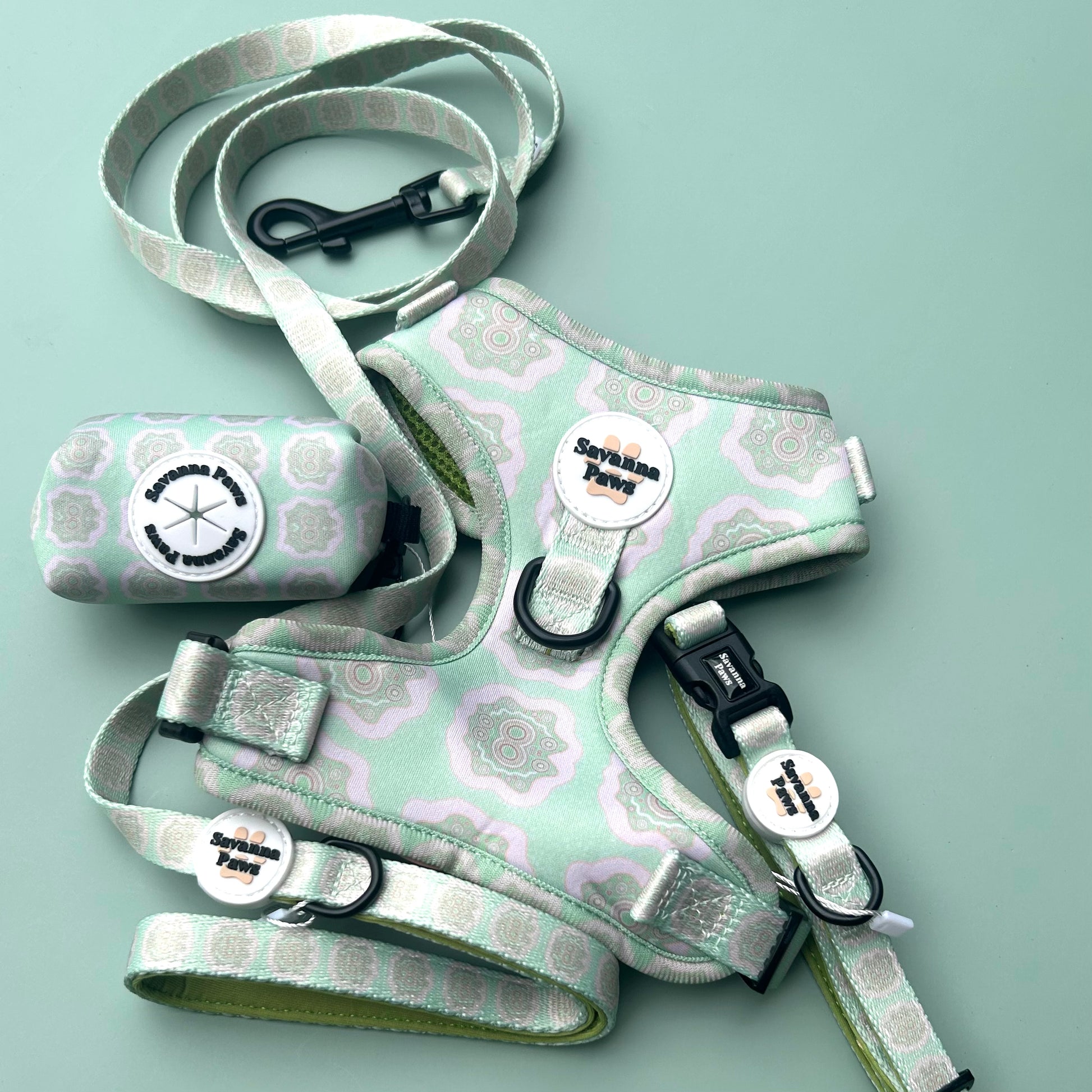 Check out the matching collars, leads and doggy doo bags for the full set!