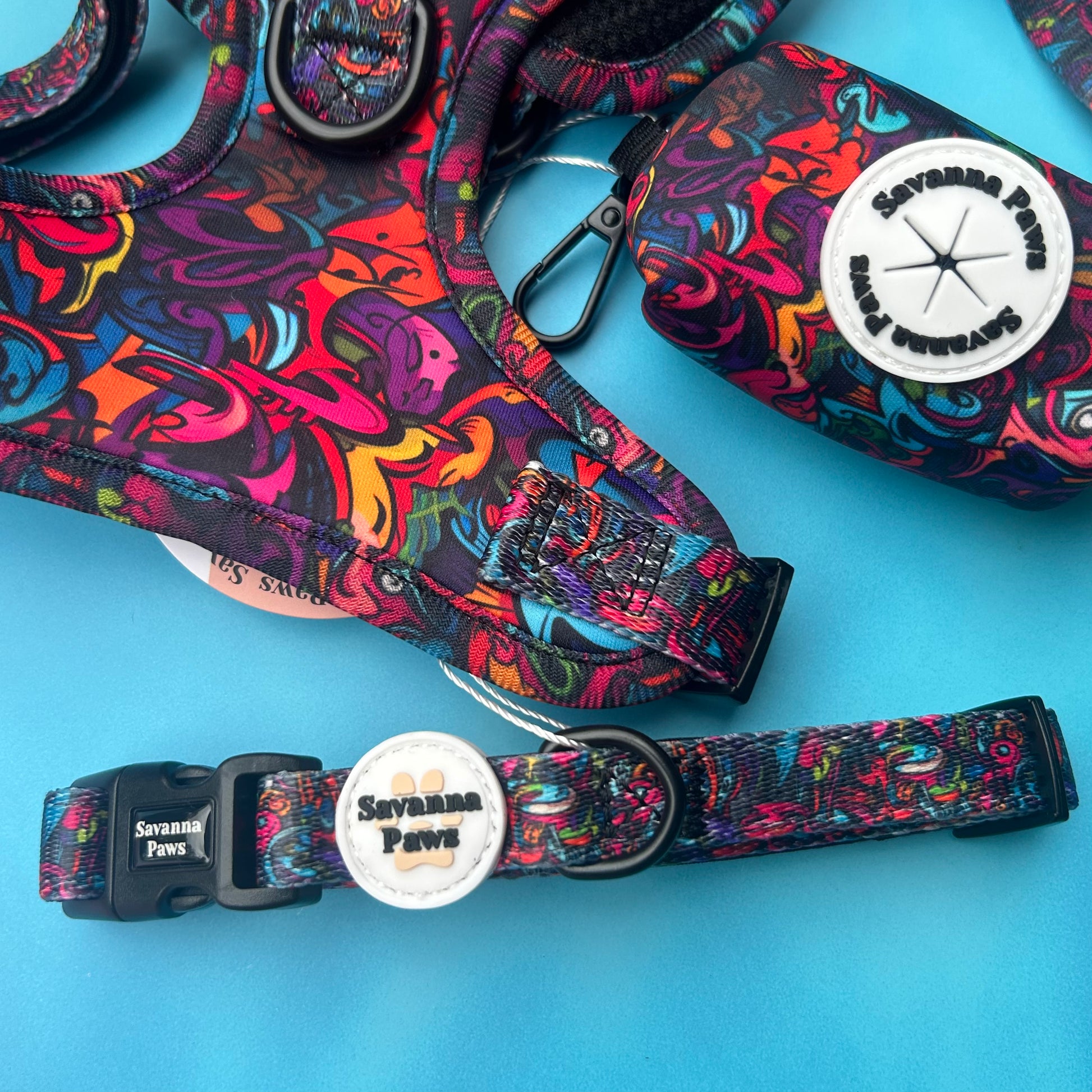 These fully adjustable polyester collars come in a fun street smart print to suit any pet.