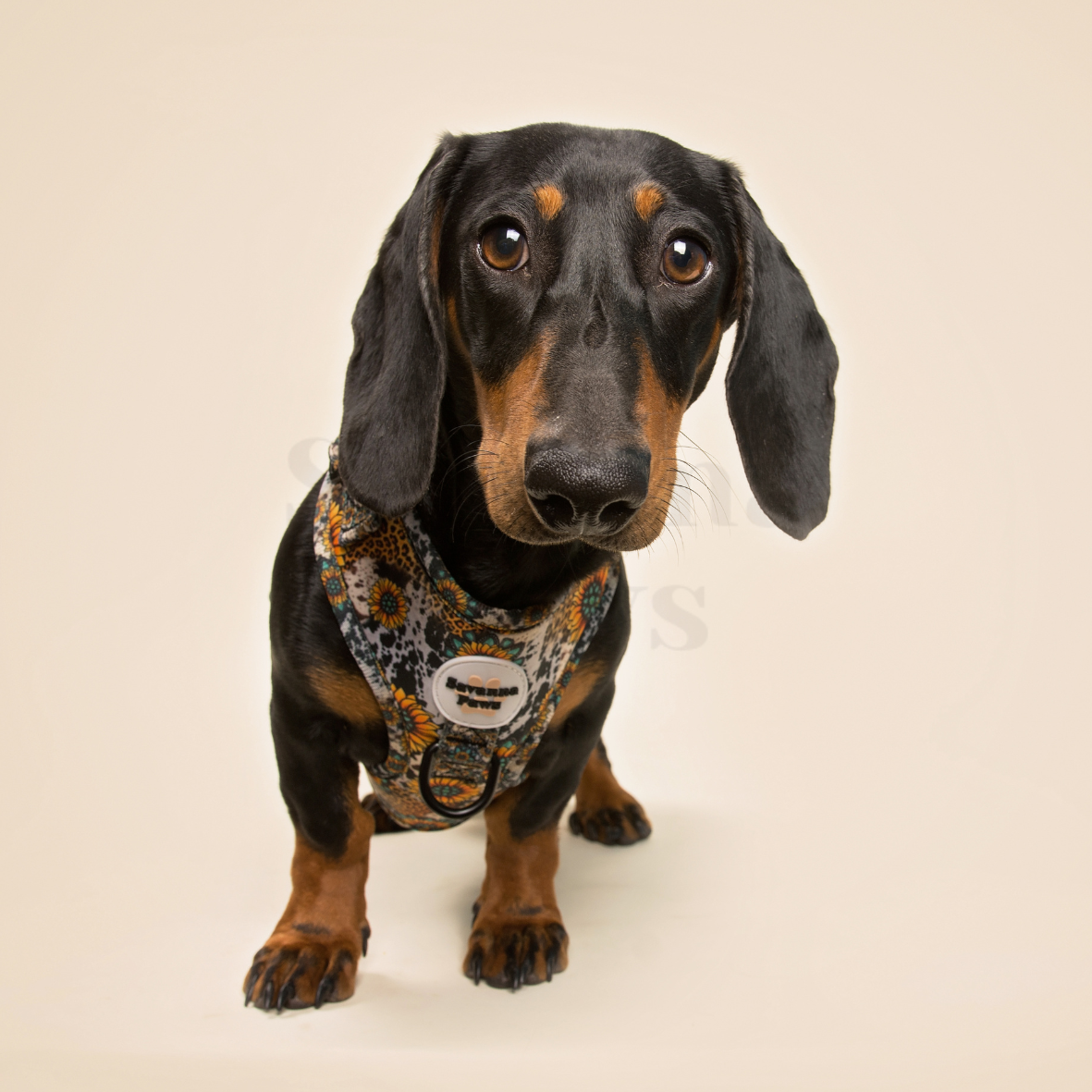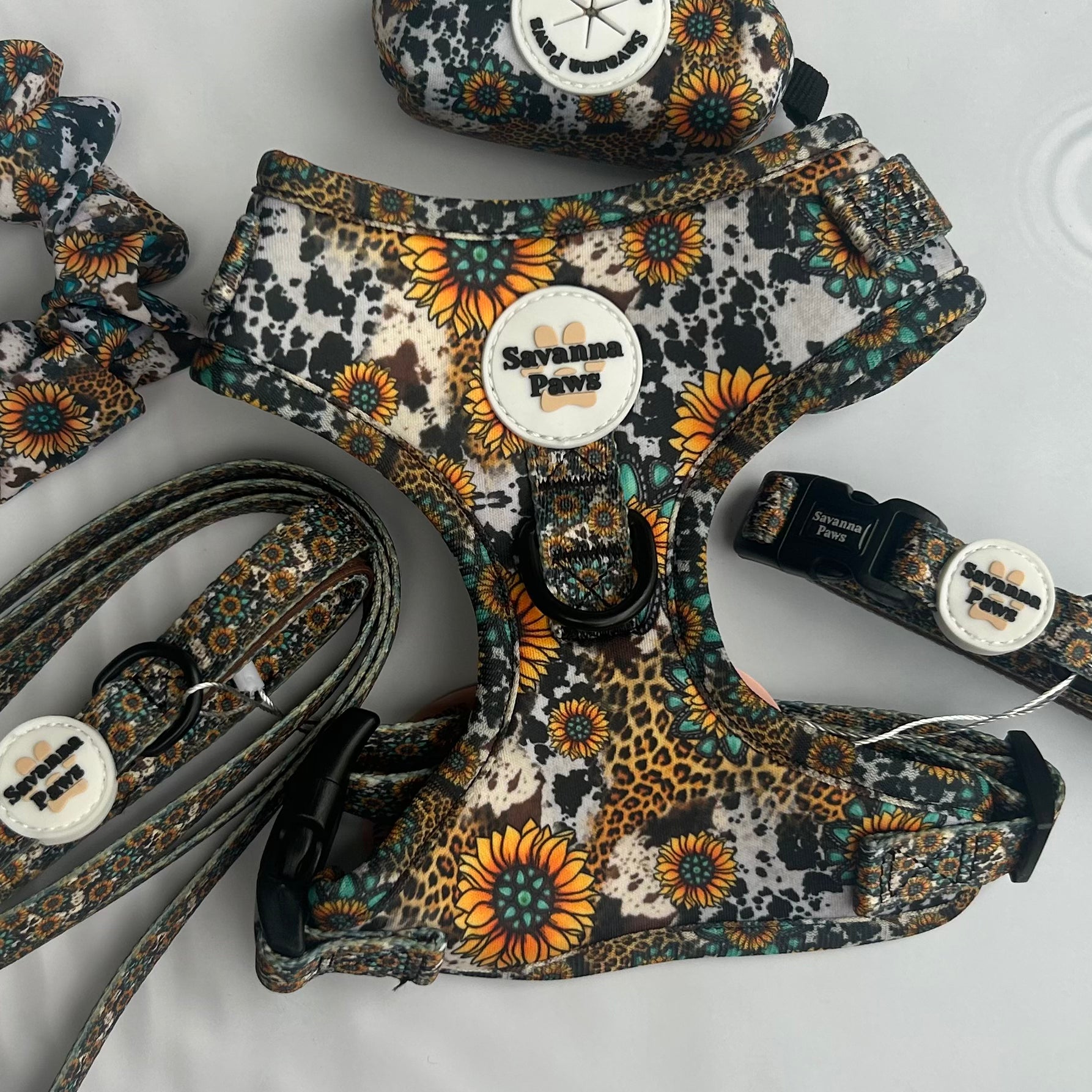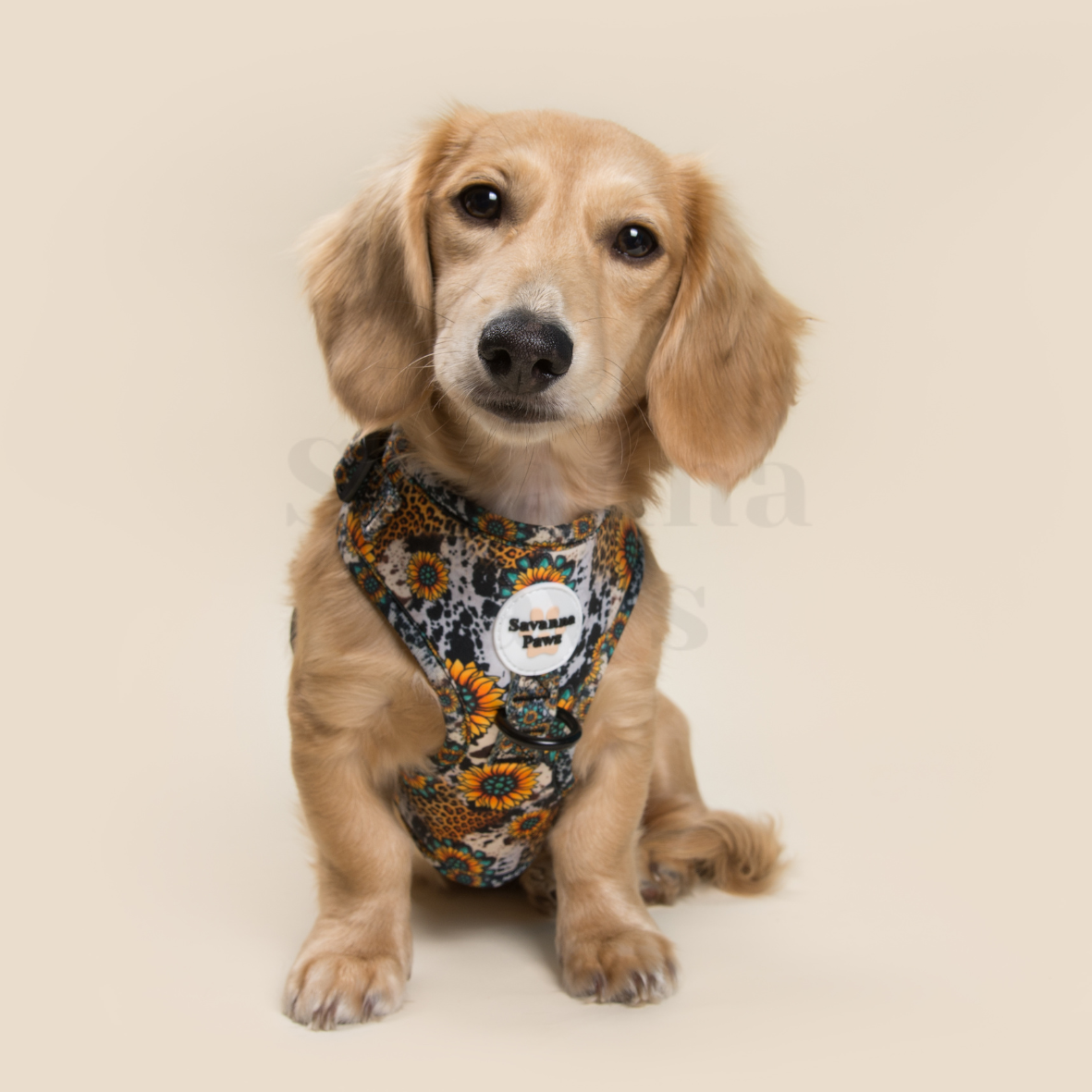 These fully adjustable harnesses come in a relaxed sunflower and country print to suit any pet.