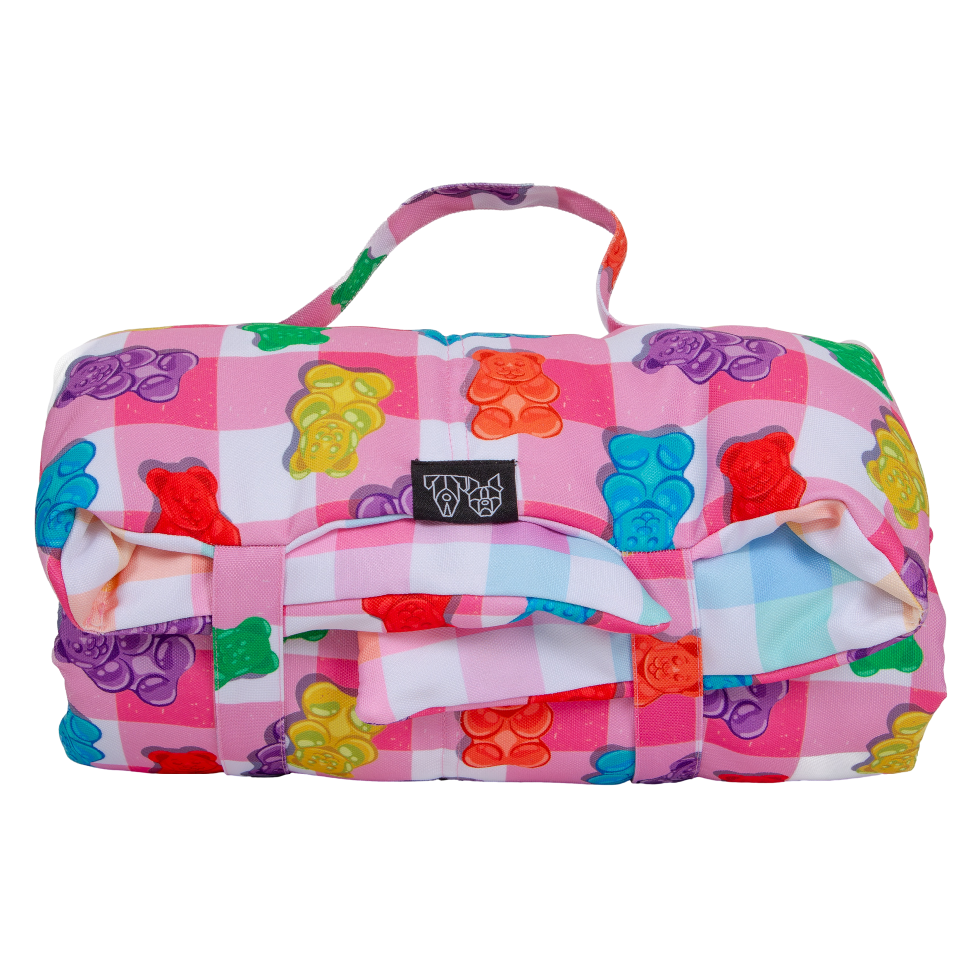 ON-THE-GO PET MAT: Beary Sweet/Rainbow Gingham