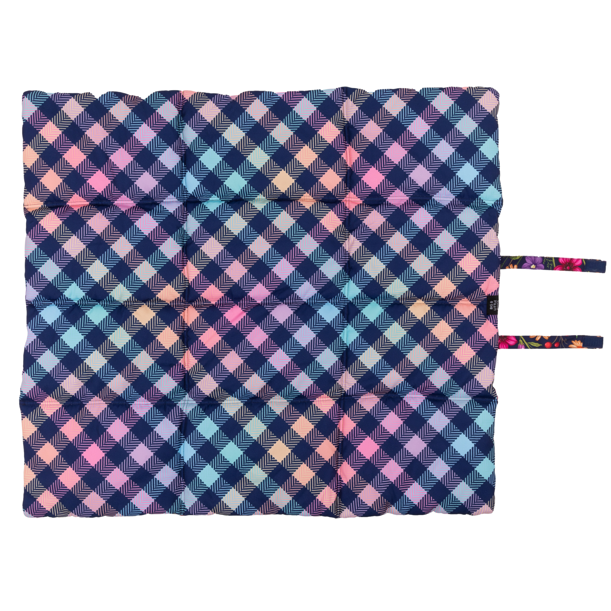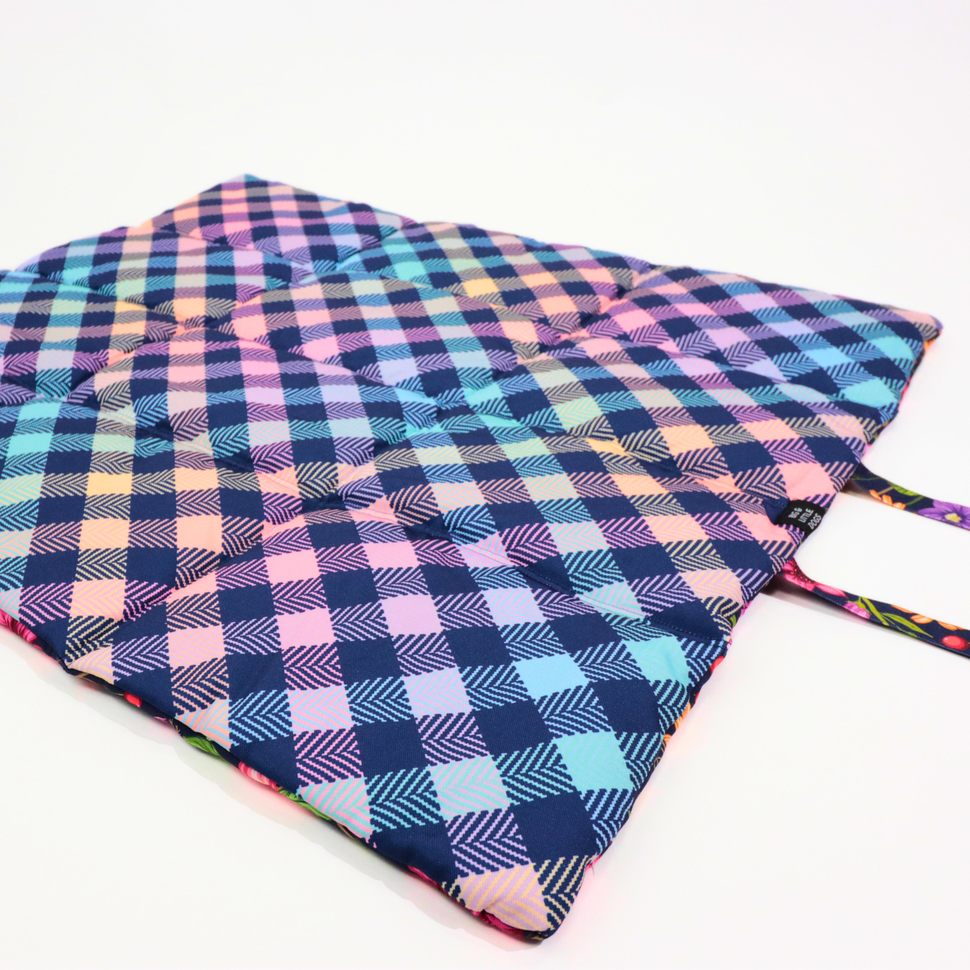 The perfect accessory to take with you everywhere you go to ensure extra comfort. Reversible prints, padded for ultimate comfort, easy to carry handle. Water resistant, Machine-washable for ease. Foldable for the perfect size.